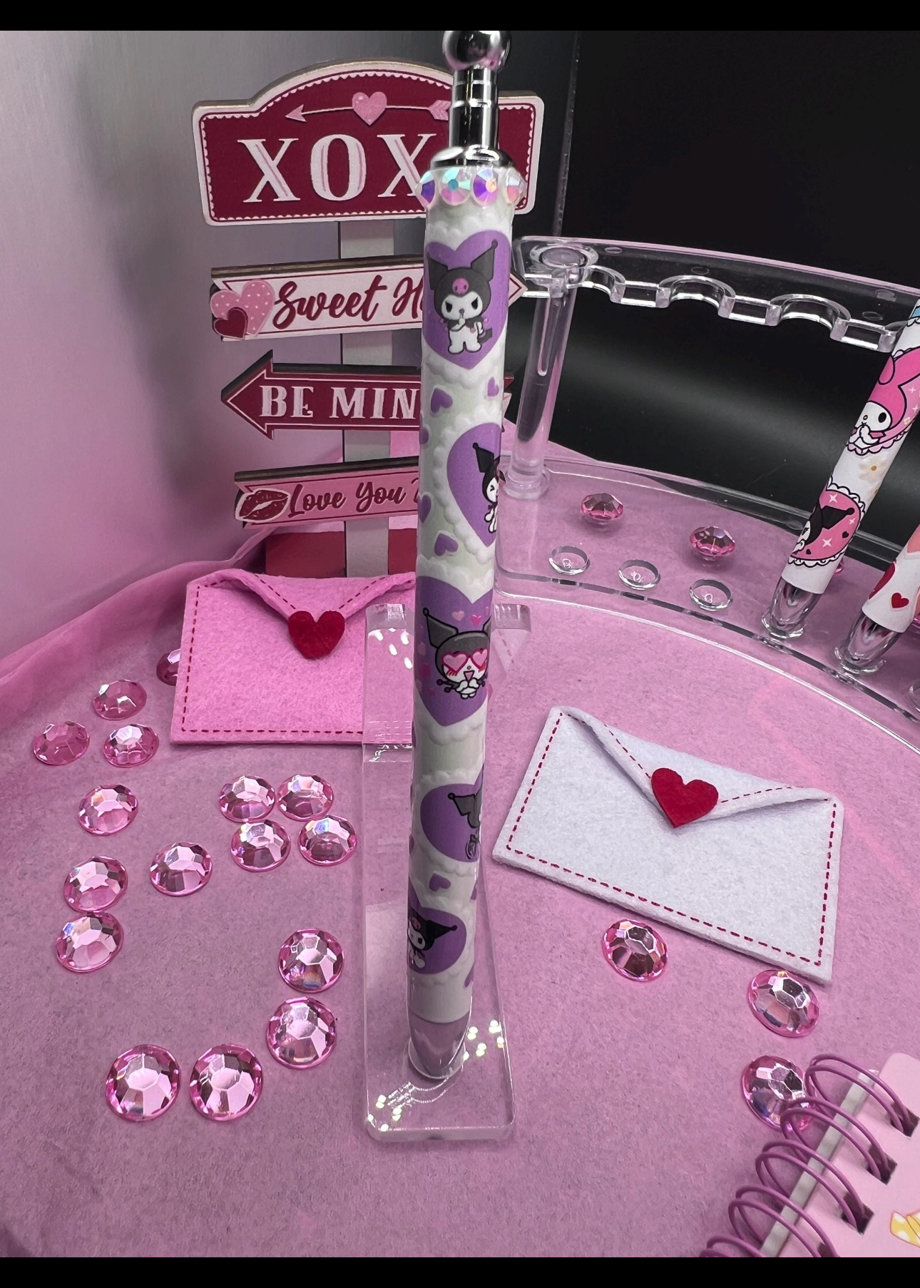 Blinged stylist gel pen with kuromi with Purple Hearts #29