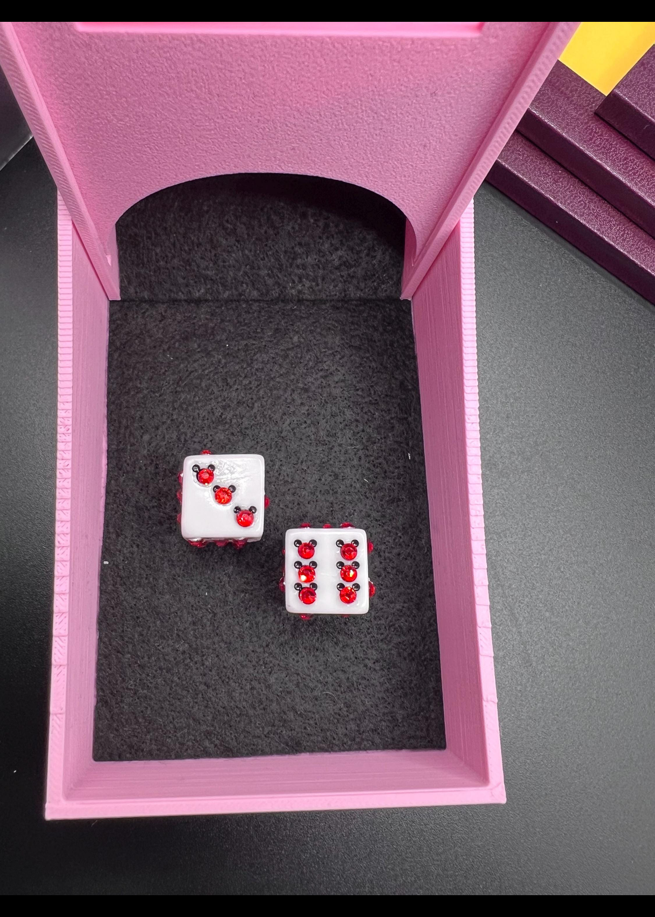 Blinged white dice with Mickey Mouse (red)