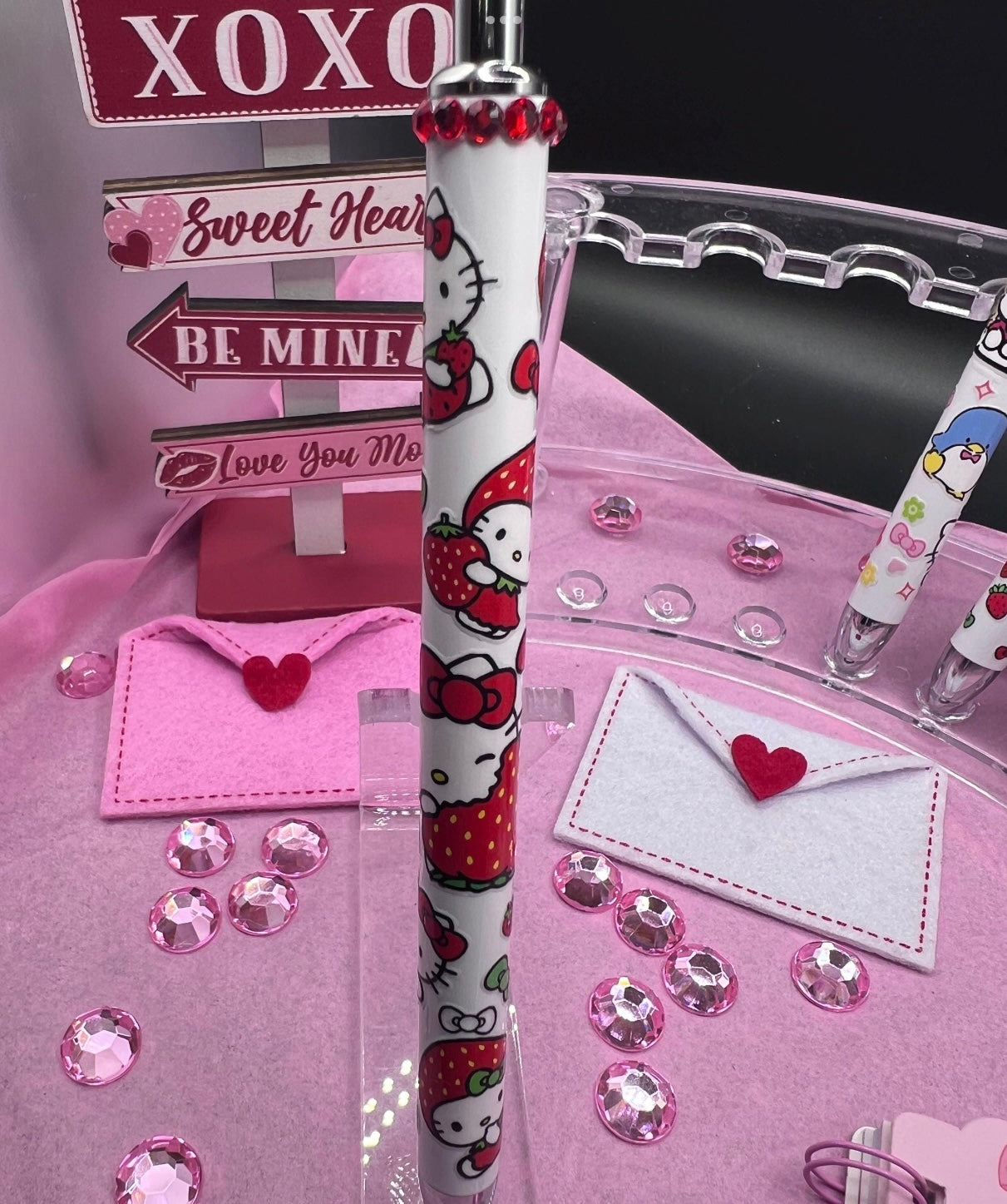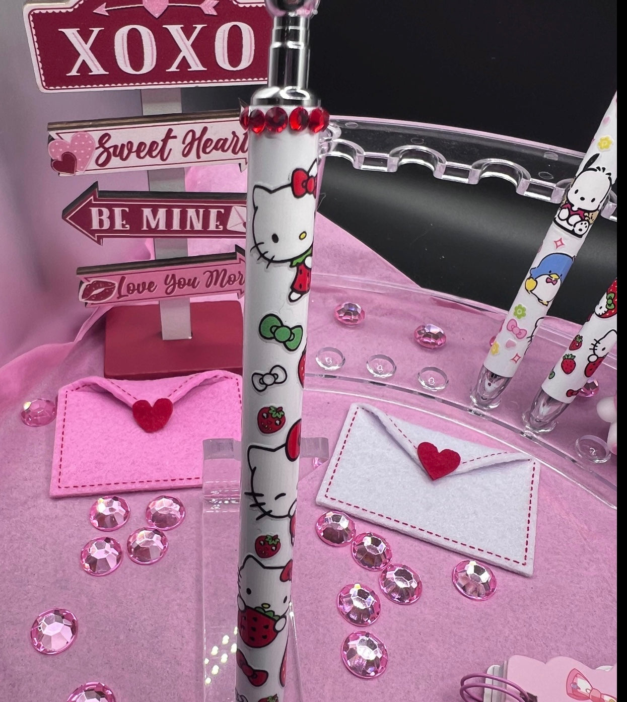 Hello kitty stylist gel pen with strawberries and glass rhinestones #32